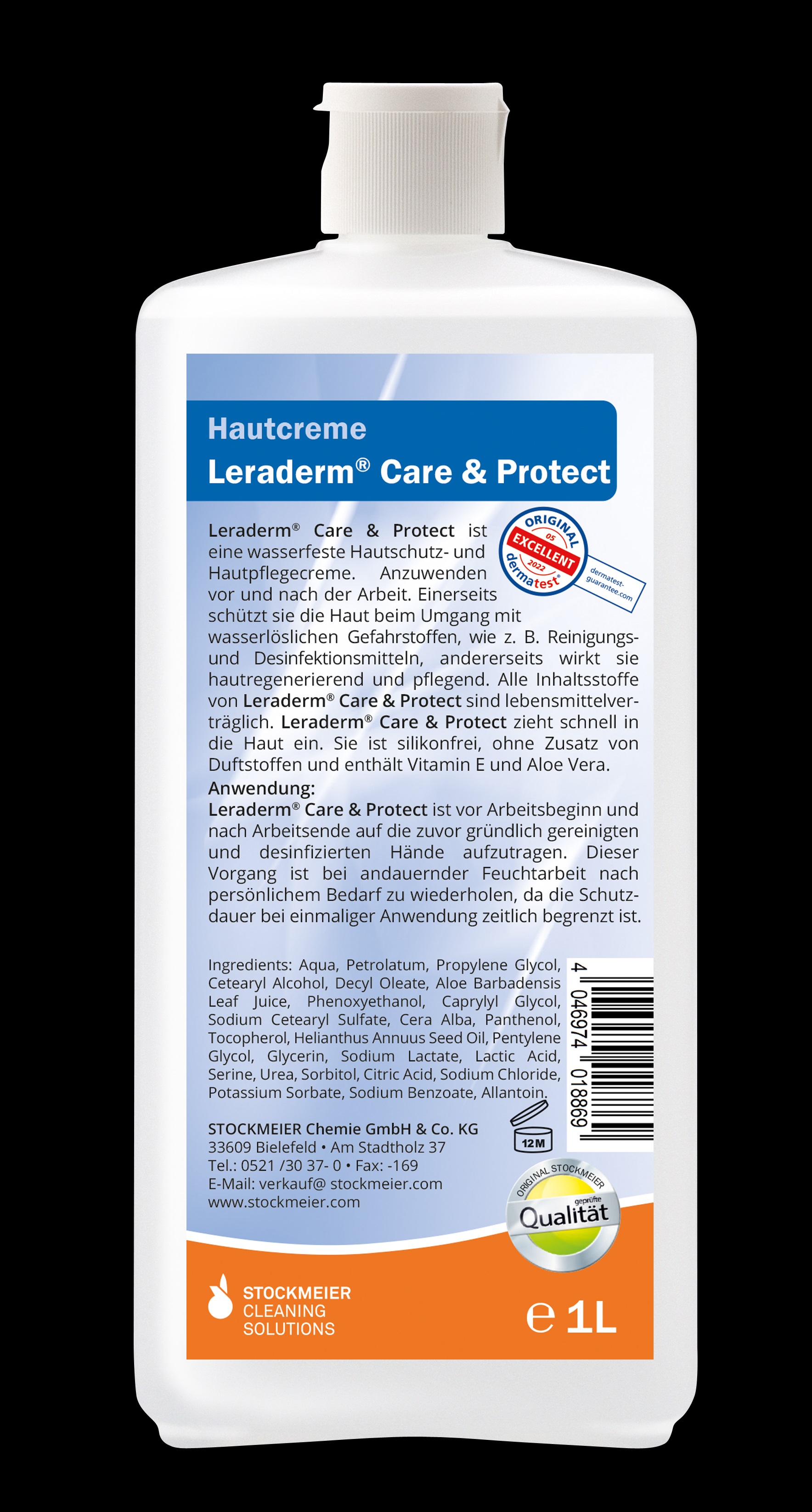 Leraderm® Care & Protect ist eine wasserfeste Hautschutz- und Hautpflegecreme. Sie